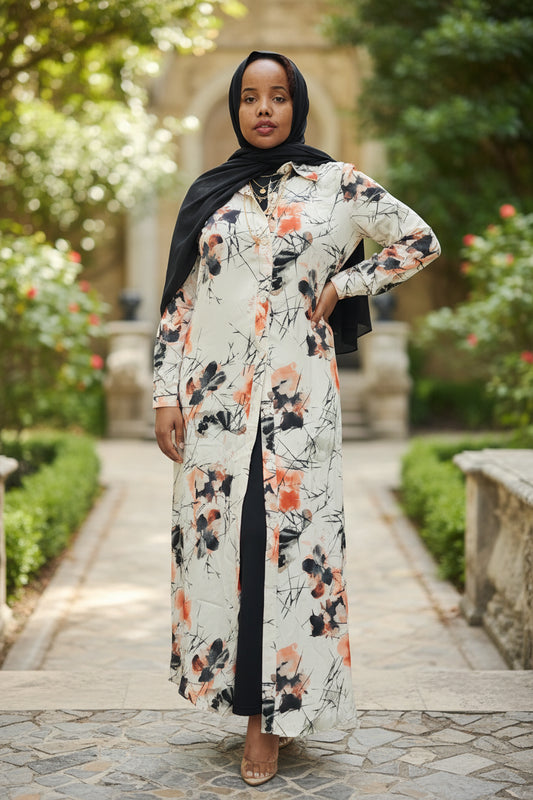 ZZ Print Dress Shirt - Flowers (MAXI)