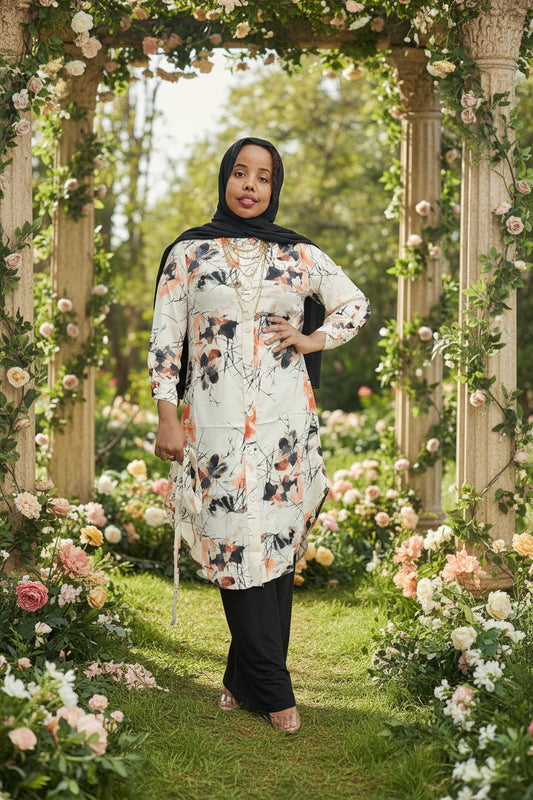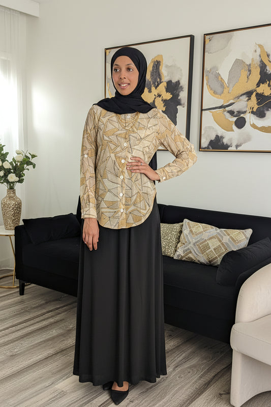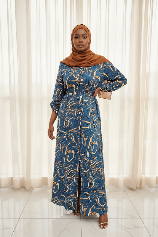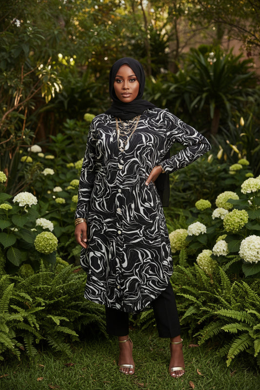 ZIZI Boutique Swirls Print Dress Shirt MIDI - Modest Style
