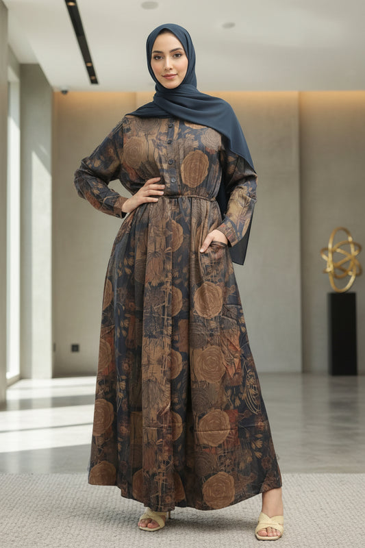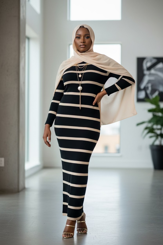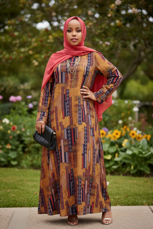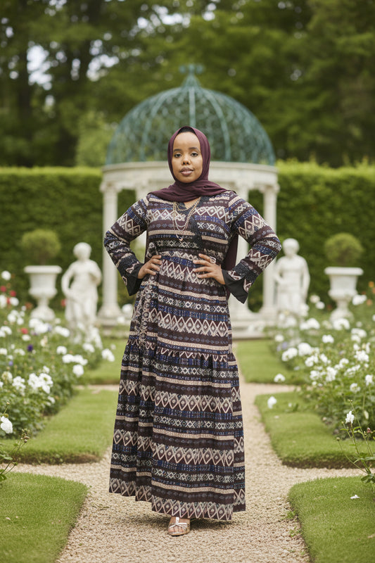 Zaynaba Modest Maxi Dress with Stylish Black Box Design