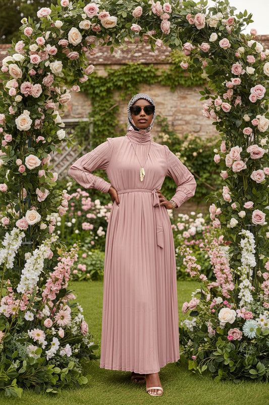Pleated Solid Color Chiffon Modest Maxi Dress