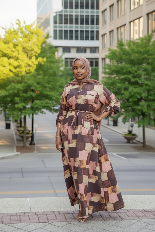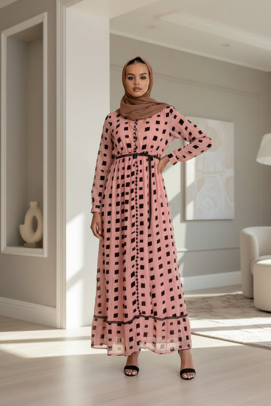 ZIZI Checkered Color Maxi Dress - Modest & Elegant