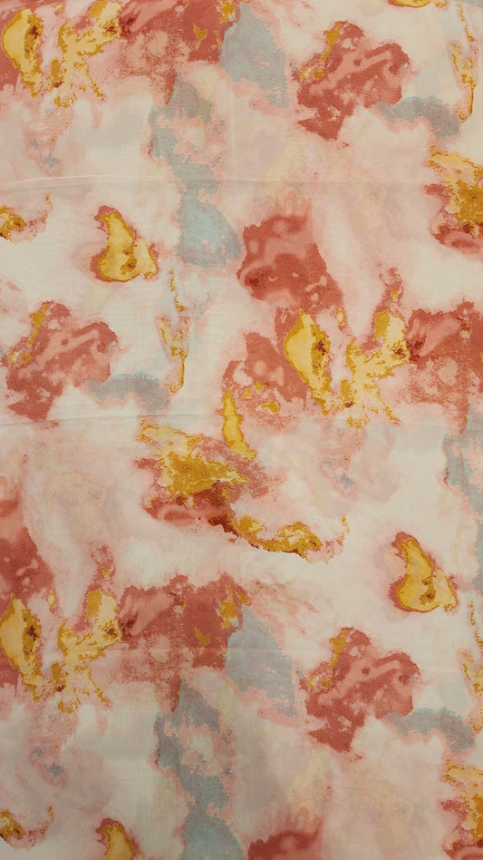 Chiffon Print Hijab - Pink Peach/Yellow/Grey Ink Blots