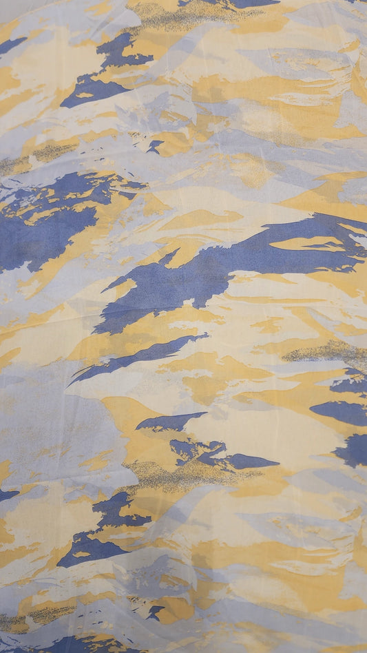 Chiffon Print Hijab Carmel Yellow Light Blue Ink Blots